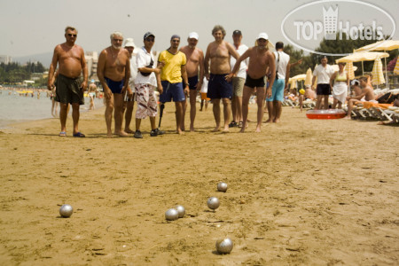9) Пляж. Море классное. Песок. Пологий заход, правда мест на пляже очень мало. С утреца нужно идти на пляж и занять место. Береговая линия ооооочень узкая. В баре на пляже только пиво, спрайты/колы/фанты, а также кофе. К обеду начинают давать фрукты и хотдоги. Туалеты на пляже маленькие и грязные.