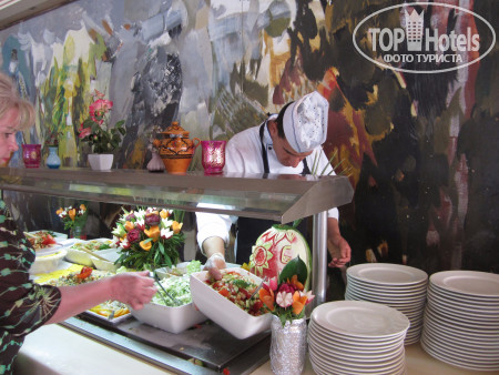Кухня разнообразная и вкусная: мясо, рыба, креветки, разные виды гарниров, супы, вкуснейшая выпечка. Из фруктов: спелые абрикосы, персики, сладкие арбузы и дыни.