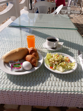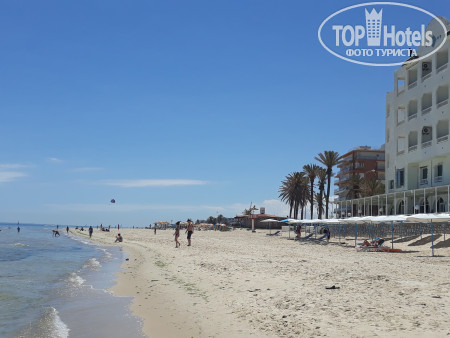 Отдыхала вместе с попутчицей с 3.10.2019 по 14.10.2019. Начну с того, что прибыли в отель в 11 часов. Нас сразу же заселили. Номер 309 с прекрасным видом на море и на отель, который, напротив. Все было хорошо, но в туалете бежал треснутый унитаз. И мы попросили другой номер. Предлагали еще 3 номера, но нам они не подходили, так как кровать одна большая, что совсем неудобно или вид с балкона не устраивал. Мы решили оставаться в 309 номере, периодически закрывая кран с водой. Через два дня пришел сантехник и "разбомбил" наш унитаз окончательно. Нам предоставили номер 302. И вид прекрасный и чистый, и в нем 3 кровати. Вся сантехника работала. Расположились прекрасно. Кондиционер был исправен, но мы им не воспользовались, так как дверь на балкон всегда была открыта. Было комфортно. Телевизор показывал 3 программы на русском. Смотреть было некогда. За пульты денег не платили. В номере есть холодильник. Чтобы подключить, нужно было заплатить. В номере уборка проводилась ежедневно. Моющие средства выдавали по требованию. Спросишь,- положат: мыло, шампунь и гель. Полотенца меняли ежедневно. Приносили, постоянно, туалетную бумагу. Для пляжа брала свое. Чайника и посуды в номере не было. Маленький кипятильник и посуду привозили с собой. Питание в общем-то хорошее. Фрукты: арбузы, дыни, яблоки, сливы и виноград. Мясо, яйца были каждый день. Нарезки овощные тоже. Минус в том, что нет заправок к ним. Майонез или масло берите с собой. Можно купить все в Моноприксе. Супермаркет рядом, в пяти минутах ходьбы. Насчет чистоты в ресторане спорный вопрос. Скатерти не свежие, а точнее не на всех столах. Вид столовых приборов тоже желал быть лучше. Свежие батоны, масло, джемы(очень вкусные) иногда выпечка. По вечерам даже шашлык и картофель фри. Выбрать всегда есть что. Так что голодными не останетесь. Вечером напитки не предусмотрены. Разрешают приносить с собой. Если вы с детьми, то этот отель точно не для вас. Вай-фай на 1 и на 2 этажах. Доллары на динары можно было менять прямо на ресейшене, но курс ниже, чем в