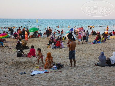 Отель без территории на первой линии, рядом общественный пляж на котором с раннего утра и до поздней ночи всегда люди. У отеля своя пляжная территория но на нем лежаки, шезлонги, матрасы-платно. Номера без изысков в некоторых есть холодильник. При заезде просите номер с видом на море, затмит все минусы). Не советую, разочаруетесь, если только очень дешево стоить будет. Питание каждый день одно и тоже, и постоянно нужно напоминать, чтобы положили еду на пустые блюда. Не далеко большой магазин "Моноприкс", и кафе рядом.