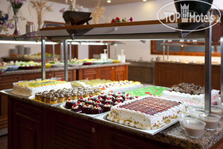 Своей кухни у отеля нет. Как мы поняли, еду привозят из отеля Xperia Saray того же владельца. На месте готовится только по одному блюду в каждый приём пищи. Например, утром - оладьи, яичница, вечером - рыба.