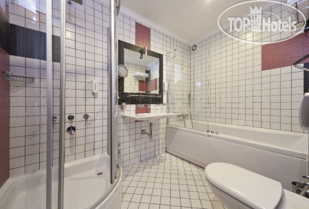 В ванной комнате душевая кабинка со стационарной лейкой и лейкой на шланге, зеркало, фен. А также косметические расходники в виде мыла, шампуней, шапочек для душа и т.п. На полу не скользкая плитка. Горячая вода была всегда, напор хороший.